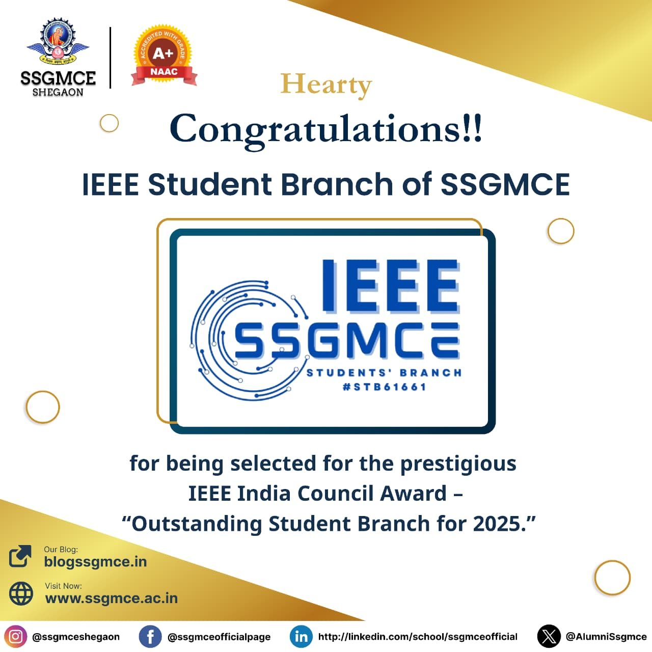 #IEEE #SSGMCE #StudentBranch #OutstandingStudentBranch #EngineeringExcellence #TechCommunity #Innovation #Leadership #PrideInEngineering #IEEEAwards #FutureLeaders #SSGMCEEEE #EngineeringStudents #TechnologyForGood #StudentSuccess