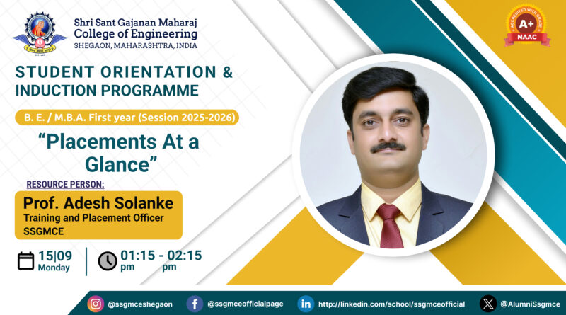The second session was led by Prof. Adesh Solanke, T&P Officer of SSGMCE, on “Placement at a Glance.”