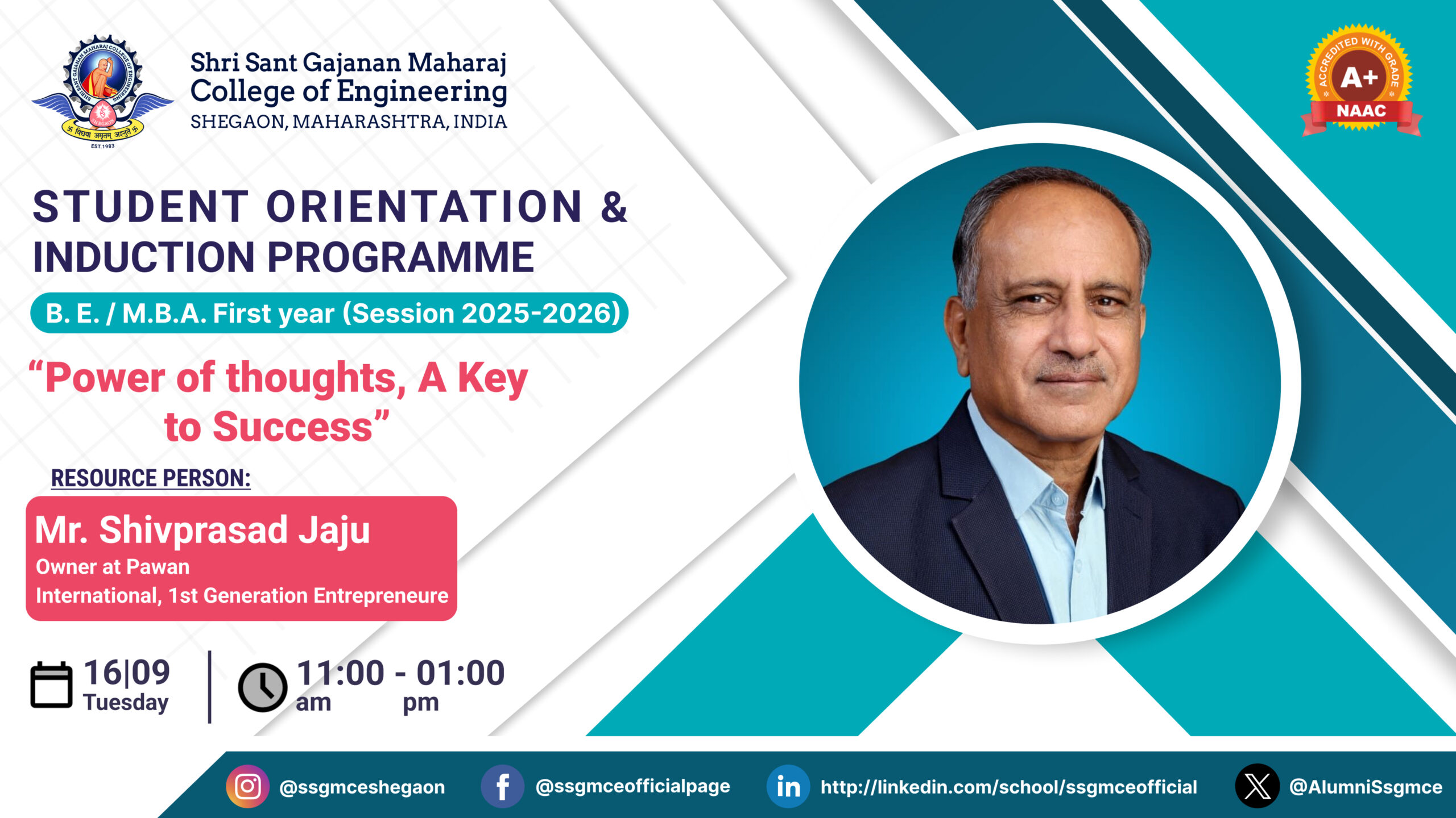 #SSGMCE #Orientation2025 #PowerOfThoughts #Inspiration #Leadership #MindsetMatters #StudentSuccess #LifelongLearning