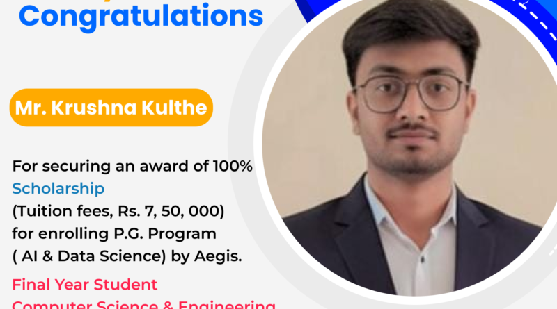 Read Moreπ A Proud Achievement for SSGMCE, Shegaon! π We are proud to share that Mr. Krushna Kulthe, Final Year CSE